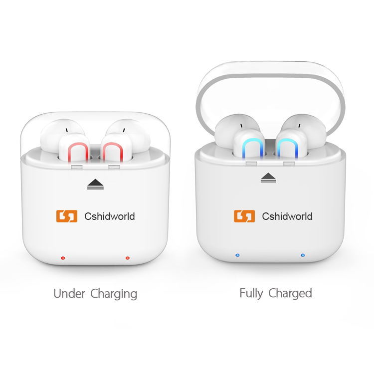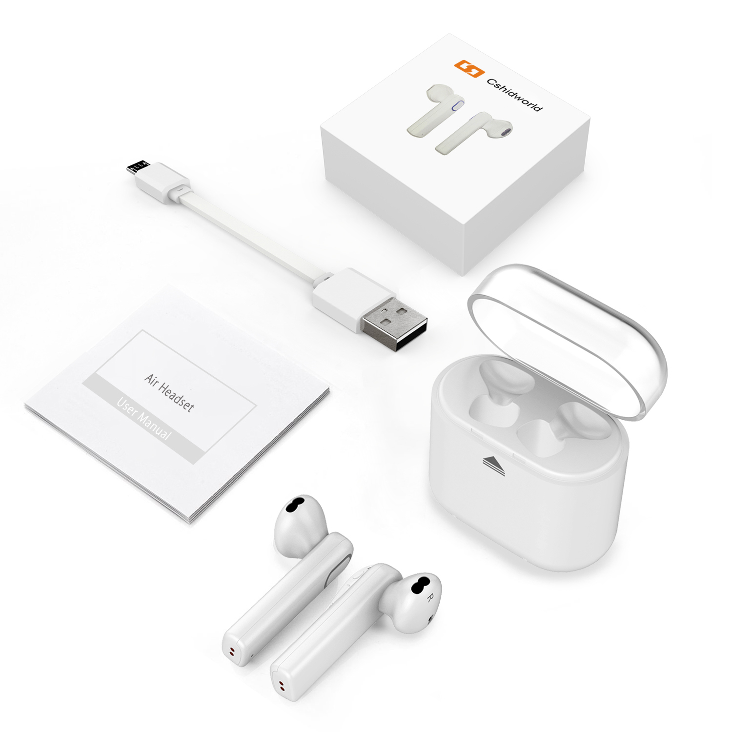 True Wireless Stereo Earbuds, Cshidworld Bluetooth V4.2 Sports Headphones Mini In-Ear Headsets Earphone Earpiece Sweatproof with Charging Box Noise Cancelling for Android and iOS Smartphones - White |