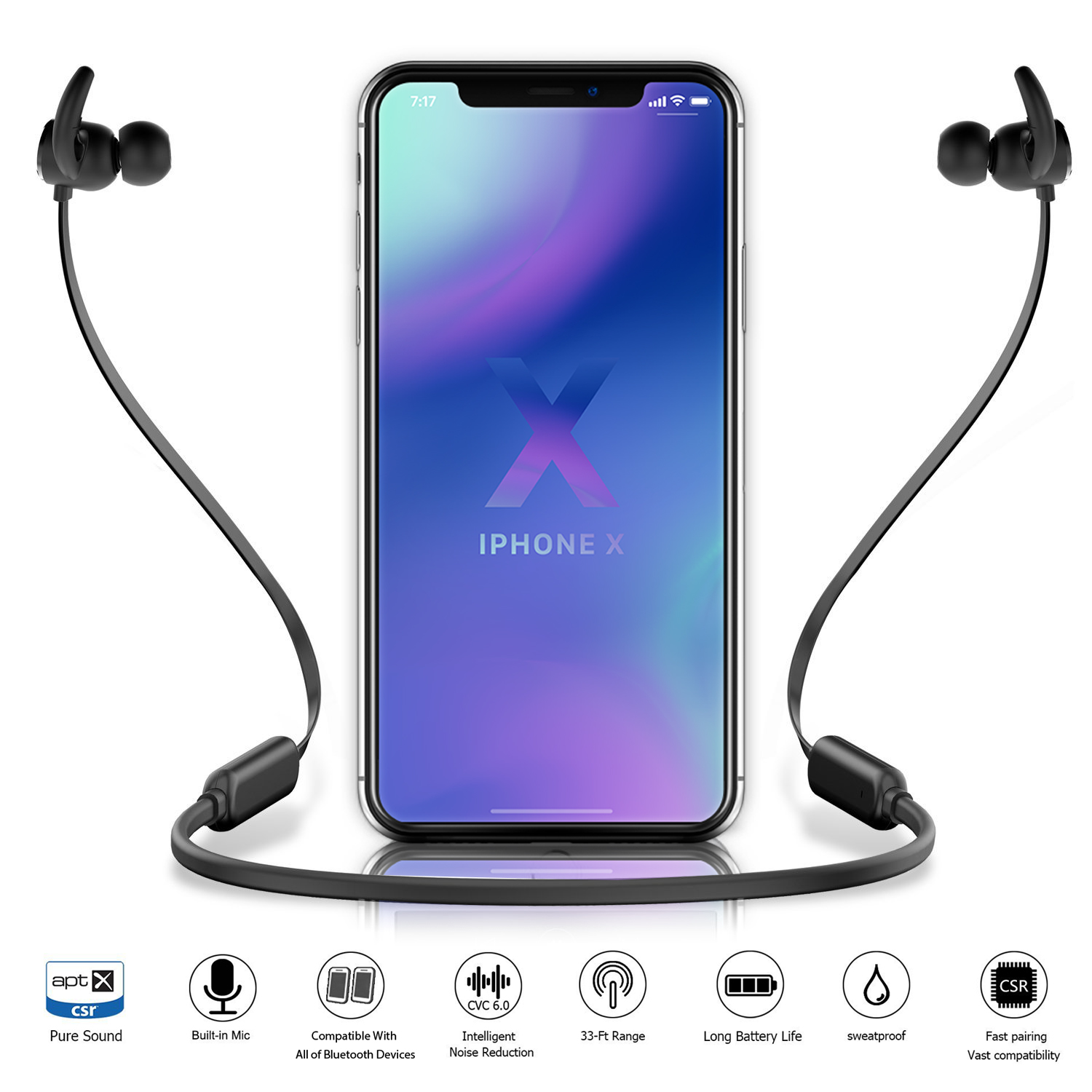 【Perfect Stereo & Crisp Audio for Calling】CSR 8645 chip support real APT-X lossless audio,perfect deep bass performance,stream music with CD-like Audio on the go.And cVc 6.0 noise cancellation microphone,built-in ceramic antenna make for clearer, more stable calls.