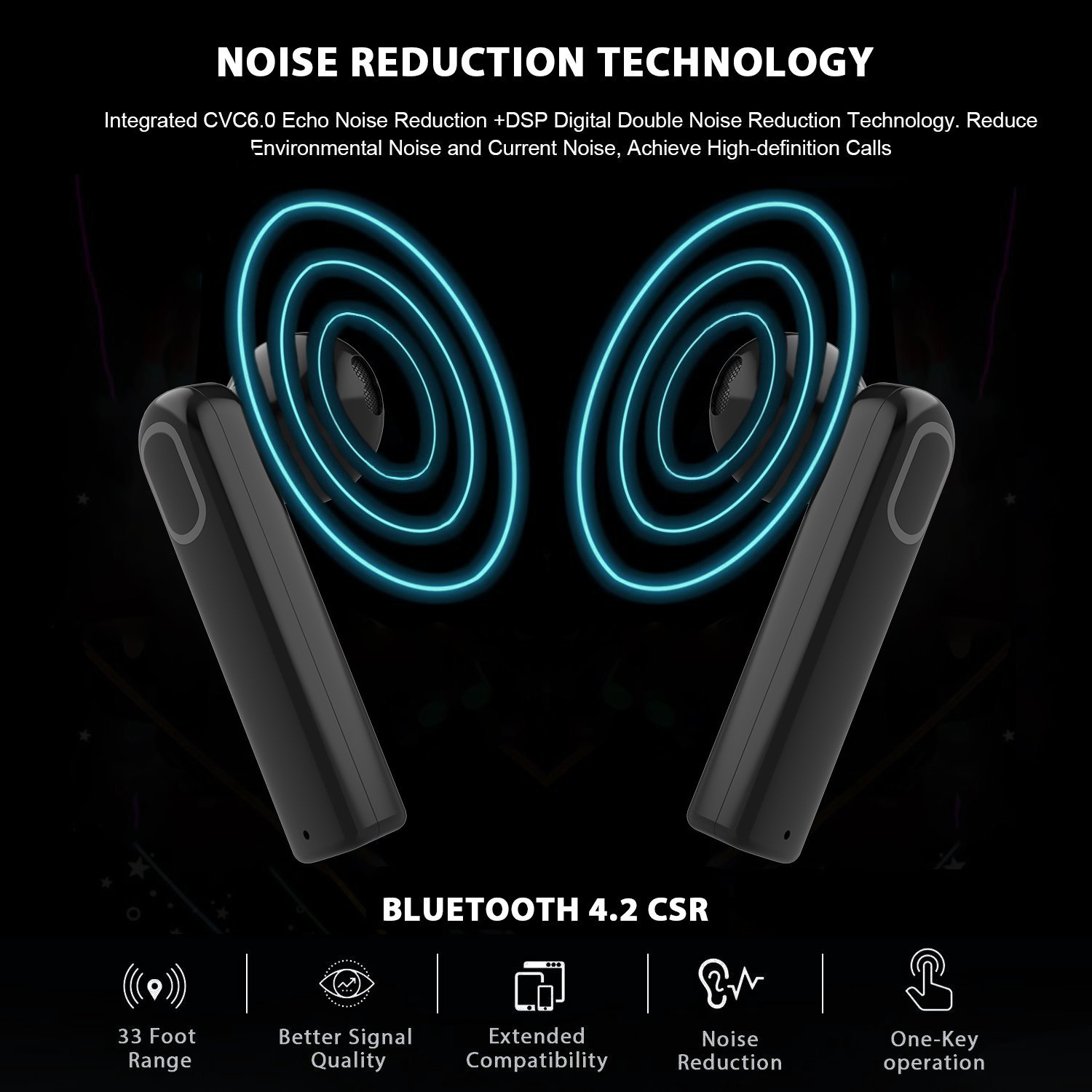 - TRUE HIGH DEFINITION SOUND Equip with Bluetooth 4.2 and CVC 6.0 Noise Cancelling technology to enjoy clear fidelity phone sound.Quiet surroundings offer better sound.