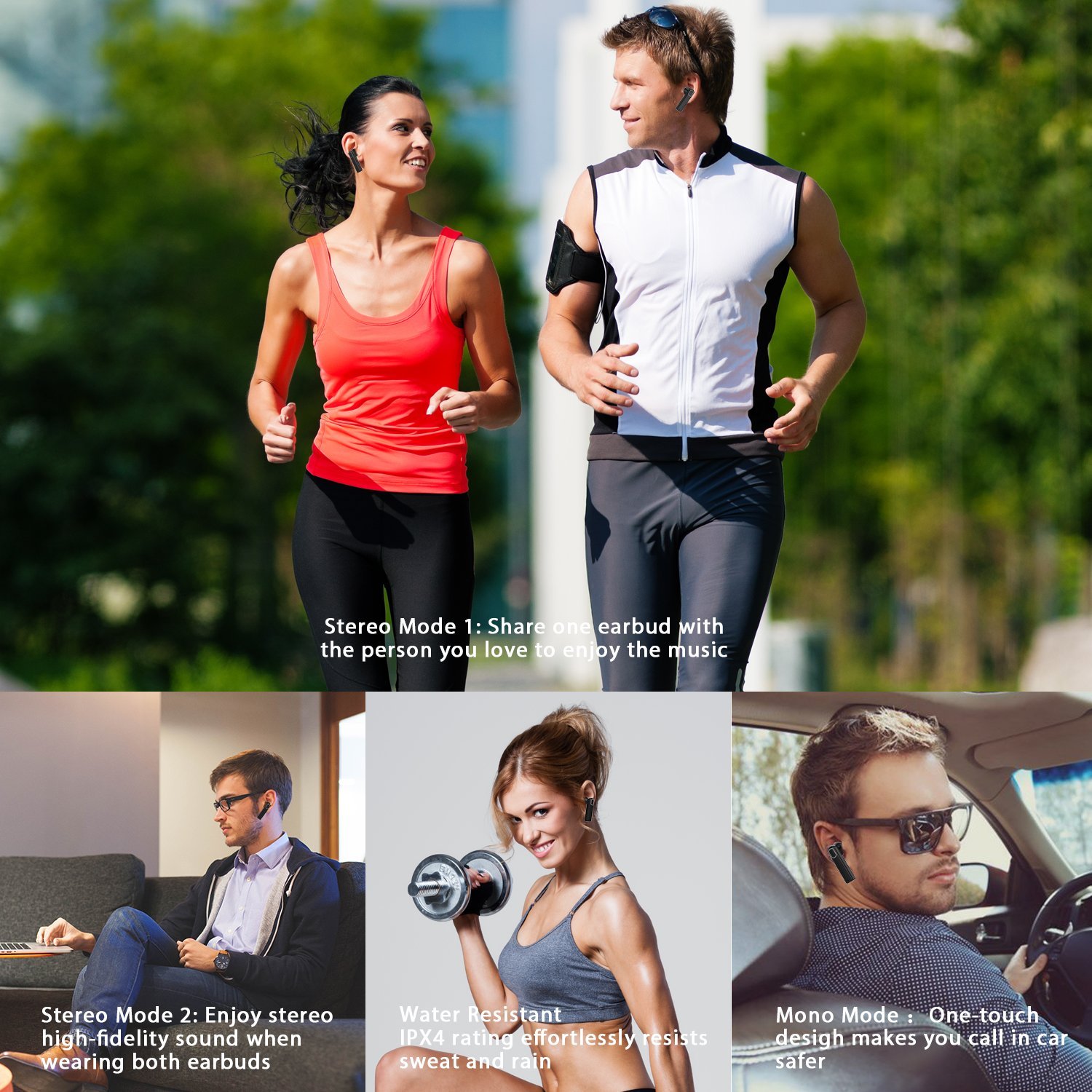 NOTE: Please be informed that you can only hear the voice from the master earbud while calling in Stereo Mode, this safety feature allows you to hear the traffic while driving.